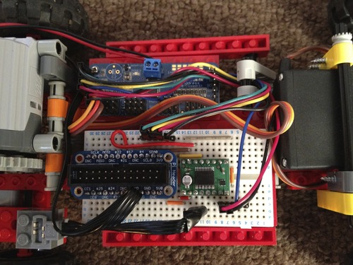 The tutorials on Adafruit’s website are truly exemplary, and in less than an hour I had the Raspberry Pi controlling motor speed and servo rotation.