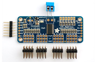 The motors are controlled via PWM (Pulse Width Modulation) using the excellent Adafruit 16-channel PWM driver.